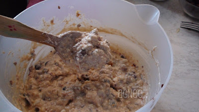 A fetát, túrót felmorzsolom és összegyúrom, -keverem a többi hozzávalóval.